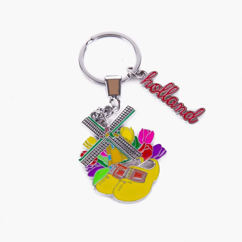 Een typisch Hollands souvenir! Deze charmante sleutelhanger combineert de iconische Nederlandse windmolen met traditionele houten klompen. Een perfect cadeau voor jezelf of iemand anders die van Nederland houdt. Gemaakt van hoogwaardig materiaal en met oog voor detail.