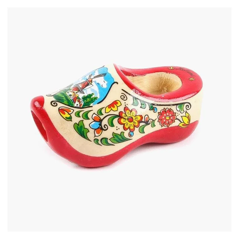 Dit traditionele Nederlandse dasklompje van 7 centimeter is een schattig en kleurrijk accessoire met een opvallende rode zool. Het klompje is beschilderd met typische Nederlandse motieven zoals een molen en bloemen, wat het een echt eyecatcher maakt. Perfect om een boerenzakdoek mee vast te maken en geeft een typisch Nederlandse touch aan elke outfit.