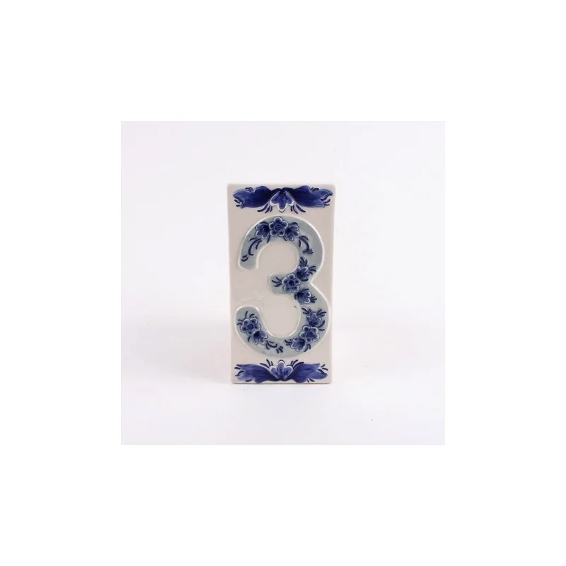 Delfts Blauw Huisnummer '3' Keramiek | Klassieke Voorgevel