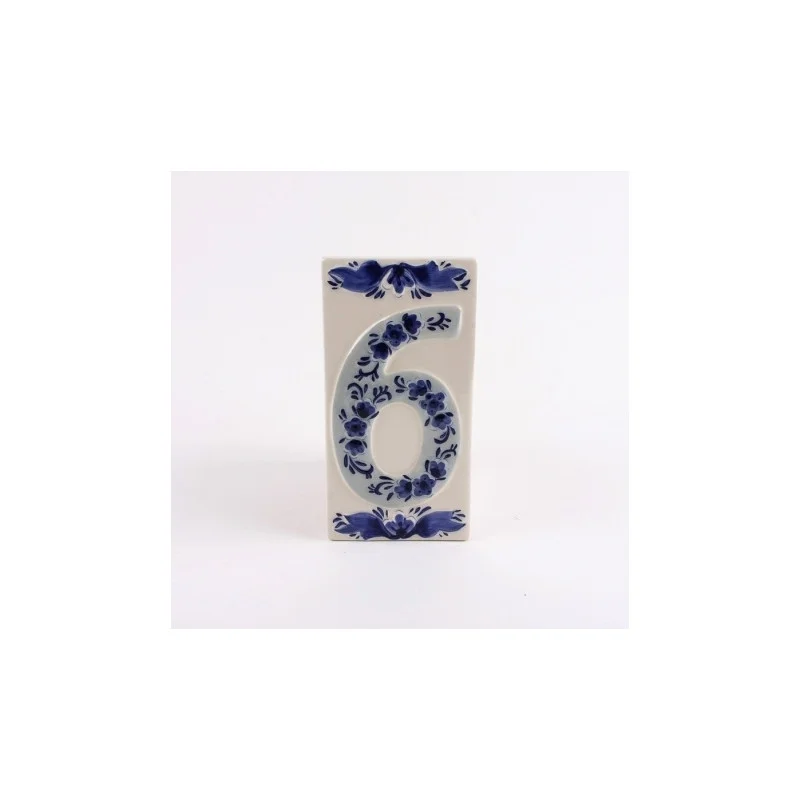 Keramisch Huisnummer 6 - Delfts Blauw Stijl (7,5x15 cm)