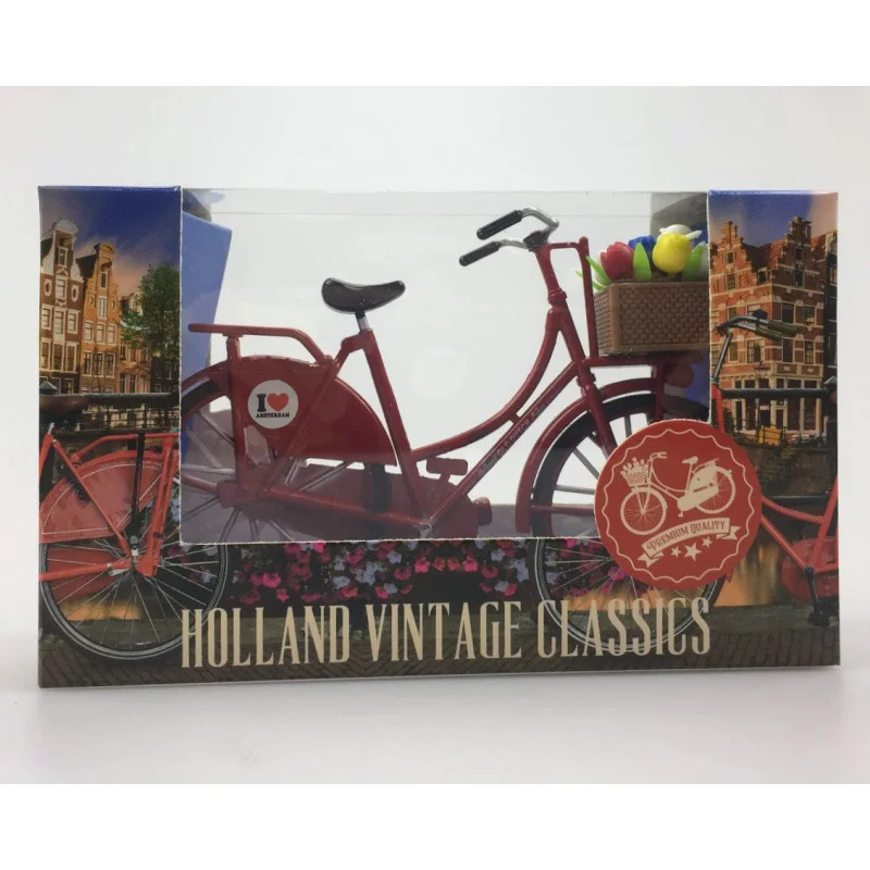 Miniatuurfiets met tulpjes rood Amsterdam 13,5 x 8 cm