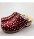 Hippe lederen damesklompen | open hiel rood-wit stip