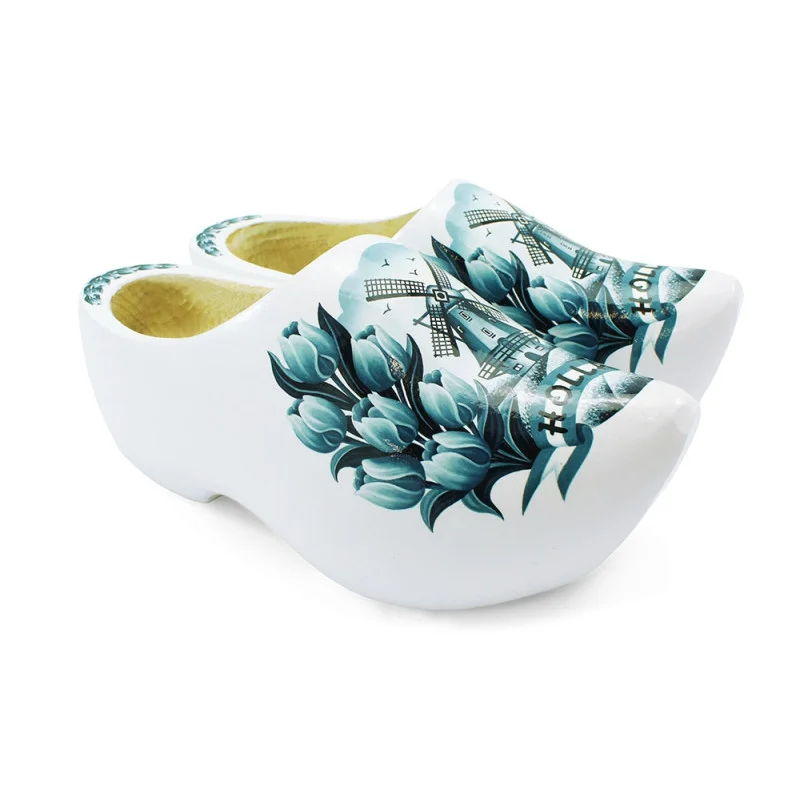 Mooie delftsblauwe molen en tulpen op deze klompen, makkelijk bestellen!