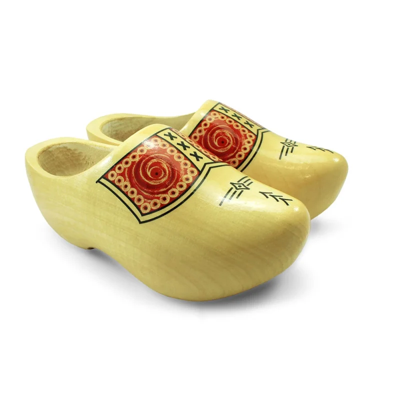 Bestel deze transparant gelakte klompen in uw normale schoenmaat
