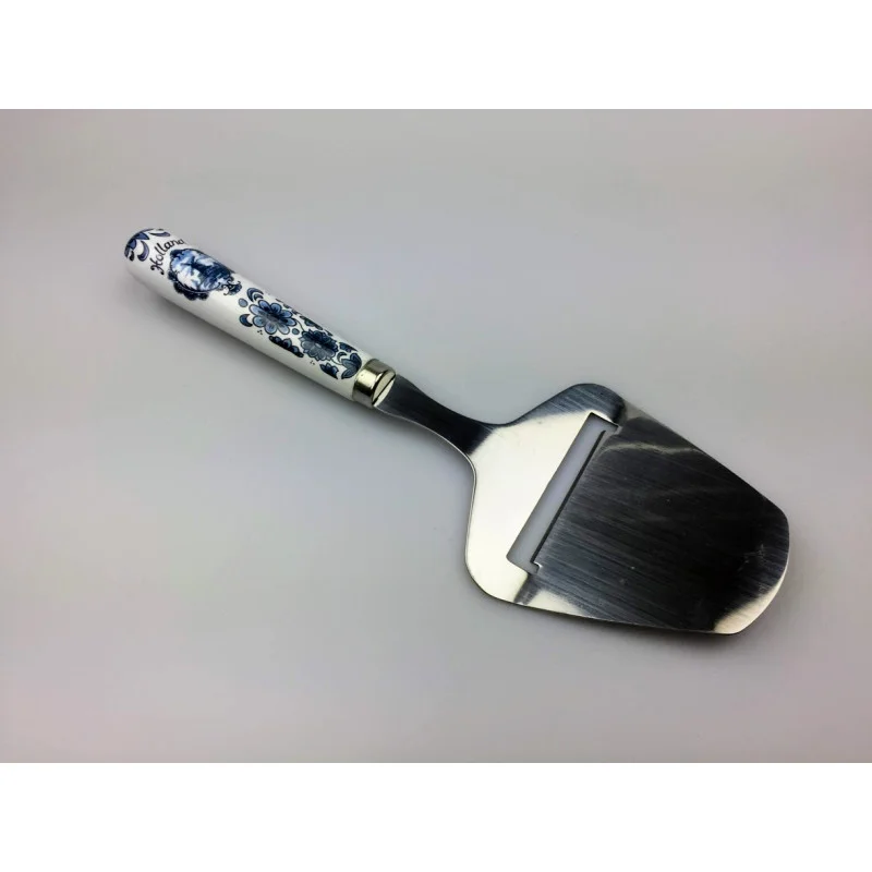 Breng een stukje Hollandse traditie naar je tafel met deze fraaie kaasschaaf in Delfts blauw design. Deze kaasschaaf combineert functionaliteit met de herkenbare charme van het Delfts blauw aardewerk. Het scherpe, roestvrijstalen blad zorgt voor moeiteloos en gelijkmatig schaven van verschillende soorten kaas. Het handvat, vervaardigd uit keramiek, is gedecoreerd met het klassieke Delfts blauwe motief, wat een elegante en authentieke uitstraling geeft. Met een lengte van 22 centimeter ligt de kaasschaaf prettig in de hand en maakt het serveren van kaas een stijlvolle aangelegenheid. Een praktische en tegelijkertijd decoratieve toevoeging aan je keukengerei.