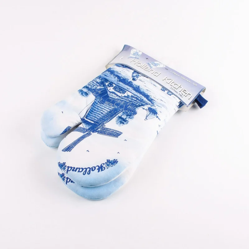 Ovenwanten met Delfts blauw molenmotief - Hollands souvenir
