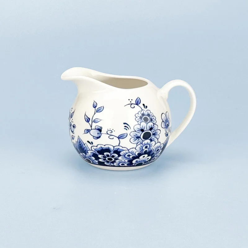 Maak uw koffiemoment compleet met deze elegante Delftsblauwe melkkan. Dit kannetje is vervaardigd van hoogwaardig keramiek en prachtig gedecoreerd met een traditioneel Hollands bloemenmotief. Met zijn verfijnde ronde vorm en praktische afmetingen van 117 x 87 x 80 mm is deze melkkan zowel een functioneel gebruiksvoorwerp als een sfeervol sieraad voor op tafel.