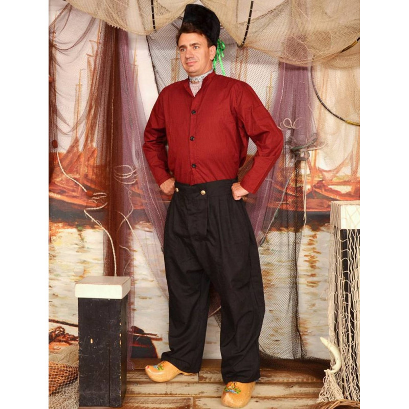 Ook voor mannen kun je bij Habermehl Volendamse klederdracht kopen. Het herenkostuum bestaat uit een traditionele broek. Deze wijde broek is gemaakt van een zware stof. Op de broekband zitten twee grote ‘knopen’, ook wel klapstukken genoemd.