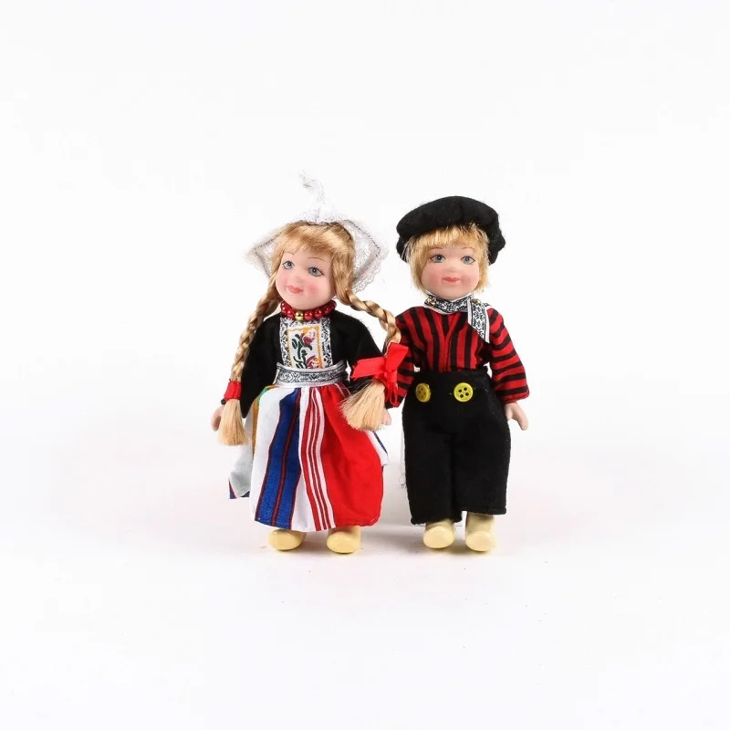 Deze paartje draagt klederdracht uit Volendam. De kleding is zwart met rood. De poppen zijn van porselein en zijn 12 centimeter groot. Een prachtig origineel souvenir!