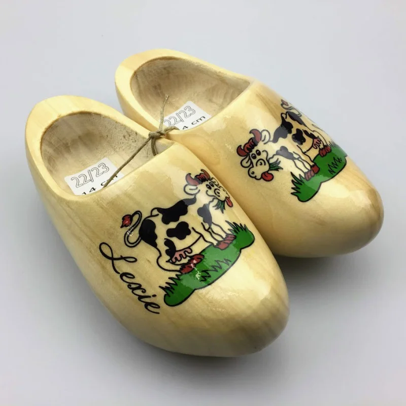 Geboorteklompjes met naam + grazend koetje schoenmaat 24