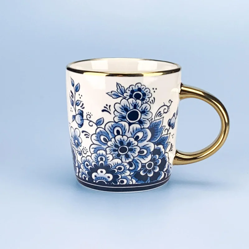 Beker met Bloemen - Delfts Blauw Design - Gouden Accent - Cadeau
