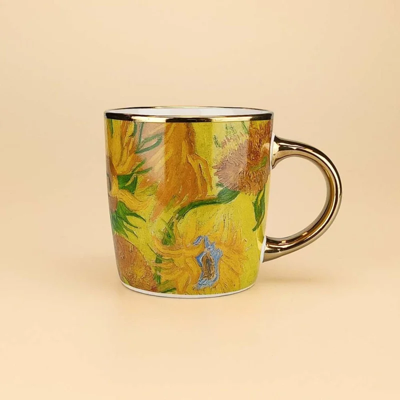 Van Gogh Zonnebloemen Beker | Kunstzinnige Koffiemok met Gouden Rand