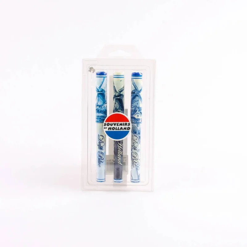 Pennen in Blister 3 Assorti Delftsblauw Holland | Souvenir Pennenset