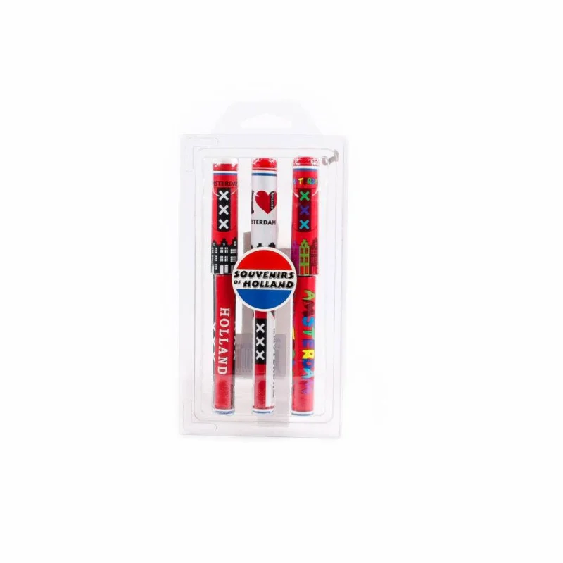 Amsterdam Logo Pennen Set (3 stuks) | Typisch Nederlands Cadeau