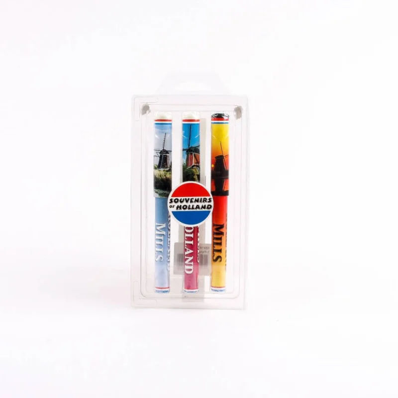 Pennen in Blister 3 Assorti Molens Kleur Holland | Souvenir Pennenset