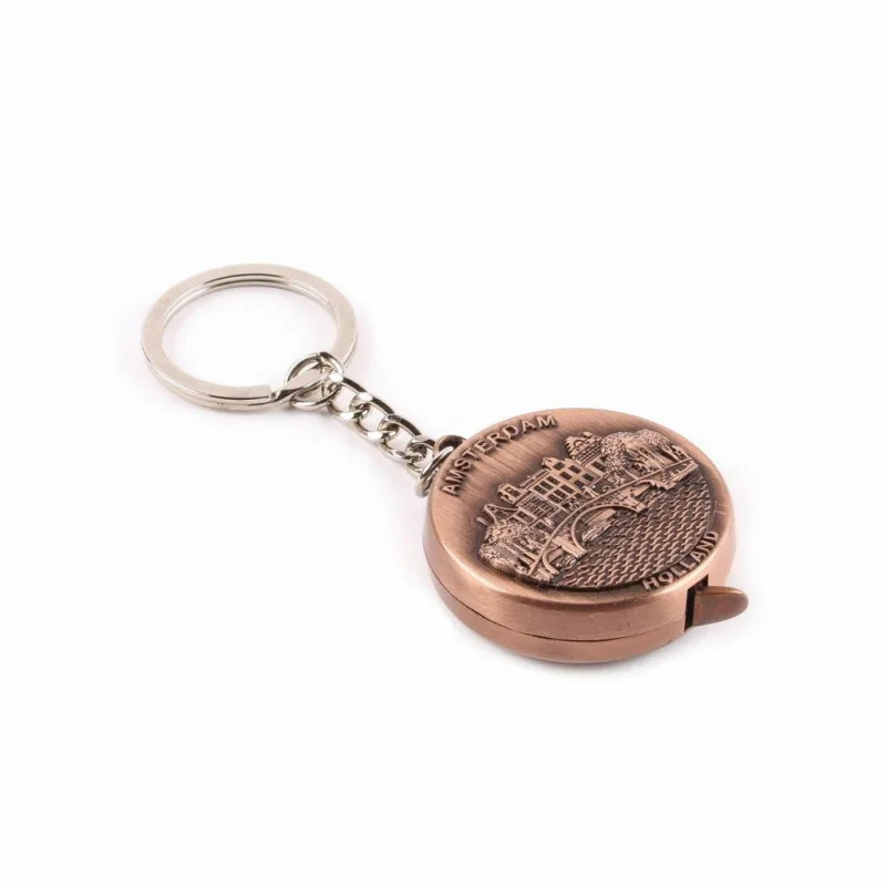 Koperen Rolmaat Sleutelhanger met Hollandse Molen & Amsterdam