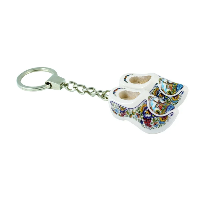 Sleutelhanger met 2 klompjes van 4 cm Wit Multi