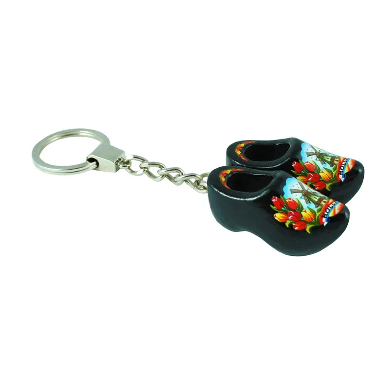 Sleutelhanger met 2 klompjes van 4 cm Zwart