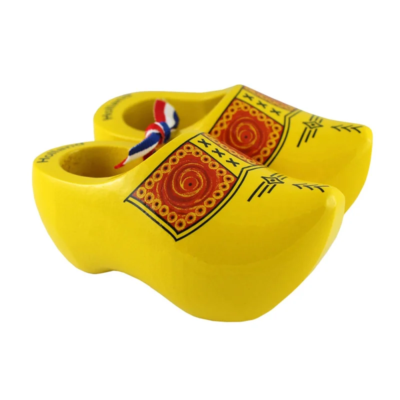 Gele Houten Souvenir Klompjes met Bies - Made in Holland