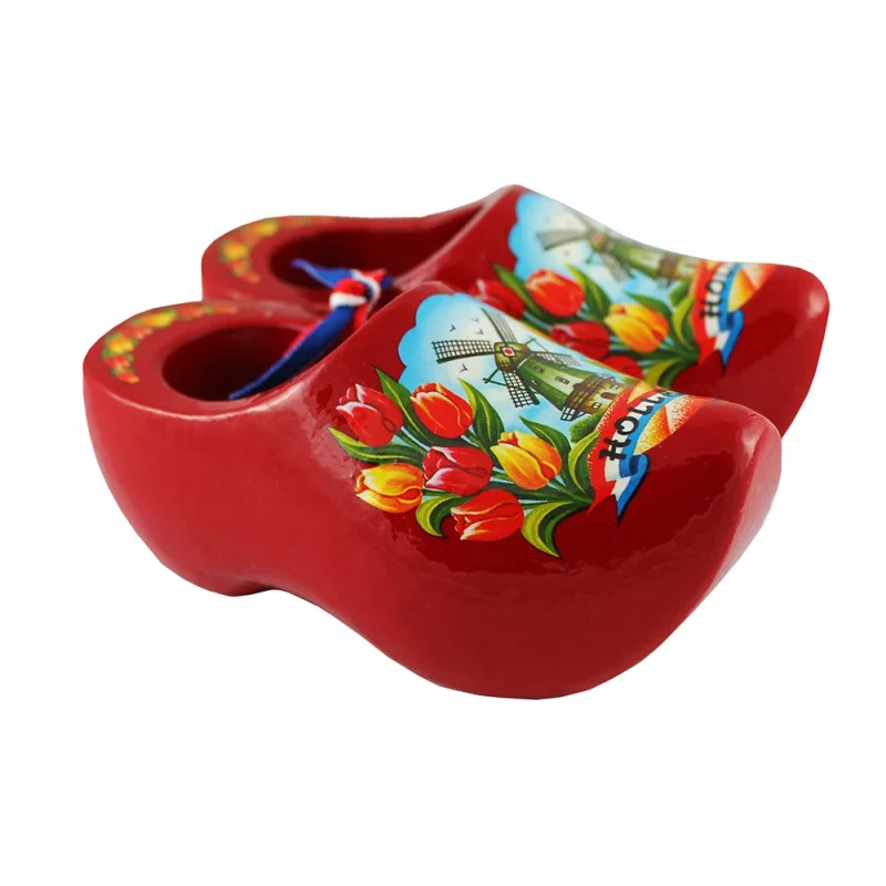 Haal een klassiek Hollands symbool in een vrolijke kleur in huis met deze rode souvenirklompjes. Deze authentieke houten klompjes zijn met zorg vervaardigd in Nederland en vallen direct op door hun heldere rode kleur. Ze zijn verbonden door een traditioneel rood-wit-blauw lintje, wat hun Nederlandse oorsprong benadrukt. Met een praktisch formaat van acht centimeter zijn deze klompjes een ideaal souvenir dat gemakkelijk in je koffer past, of je ze nu voor jezelf koopt als herinnering aan je bezoek aan Nederland, of als een typisch Hollands cadeautje voor iemand anders.