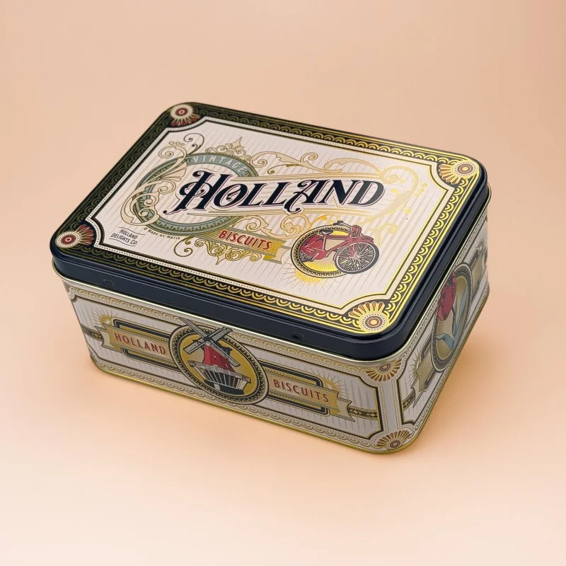 Ontdek de smaak van Nederlandse traditie met ons prachtig vormgegeven speculaasblik! Dit luxueuze blik is voorzien van een sfeervolle vintage print, prachtig afgewerkt met gouden details voor een werkelijk elegante uitstraling. Het is de perfecte manier om een stukje Holland in huis te halen of cadeau te doen aan een dierbare.