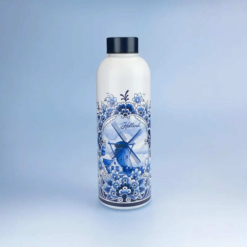 Deze stijlvolle RVS waterfles van 500 ml combineert traditioneel Delfts blauw met moderne functionaliteit. Het iconische ontwerp met een Hollandse molen maakt het een prachtig en duurzaam cadeau of een persoonlijke toevoeging aan je dagelijkse routine.